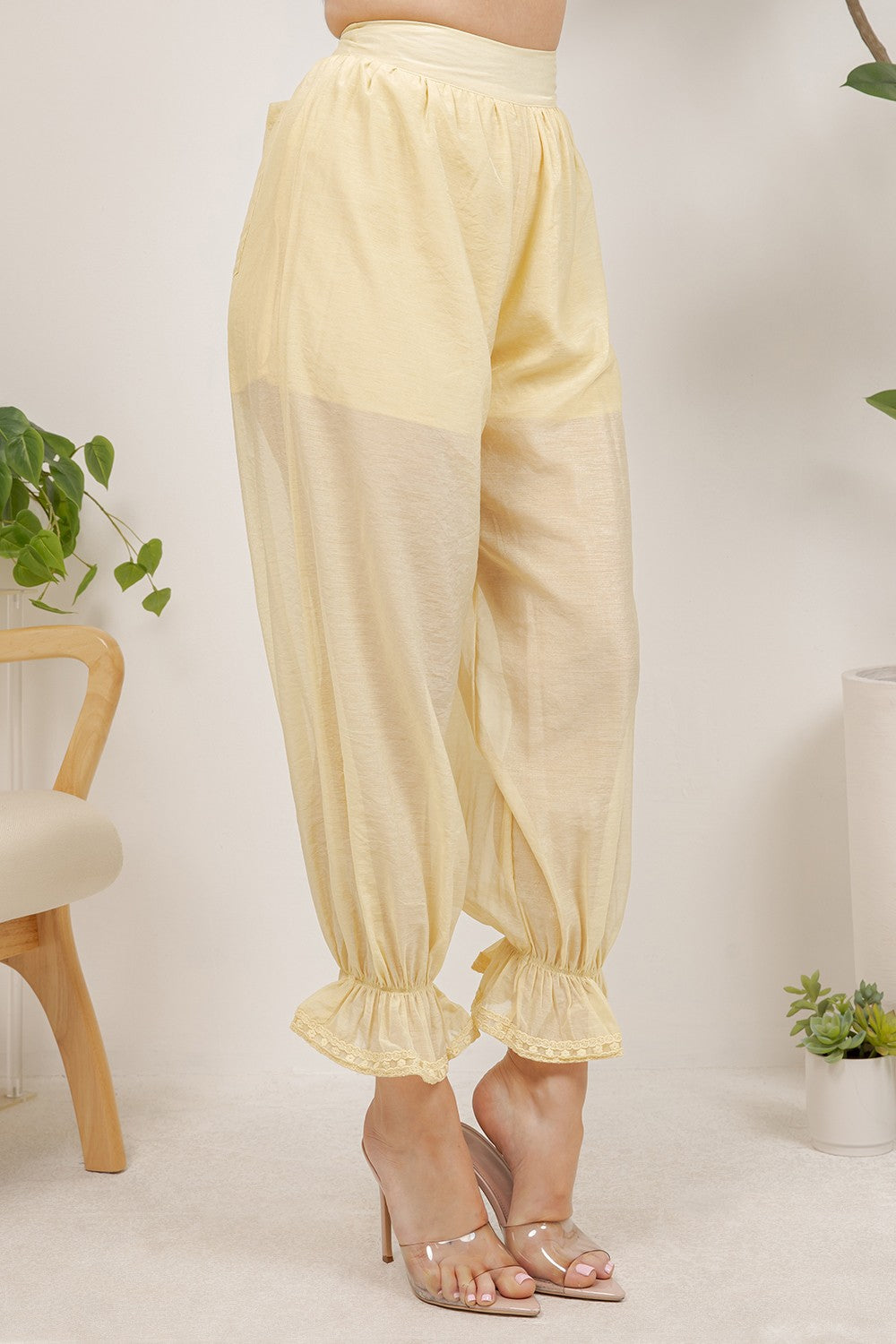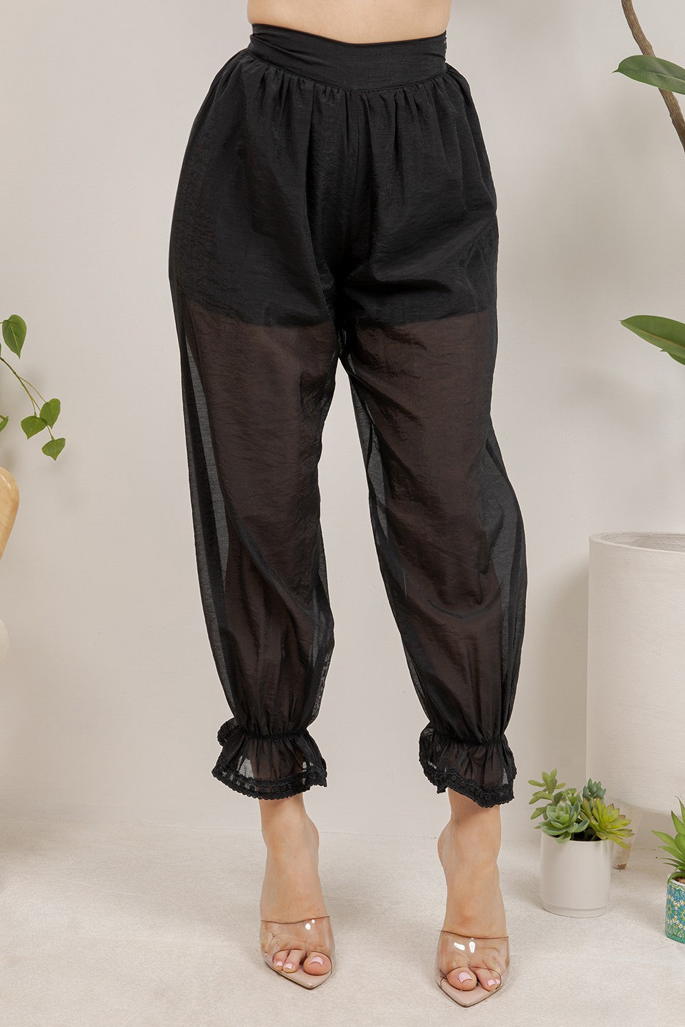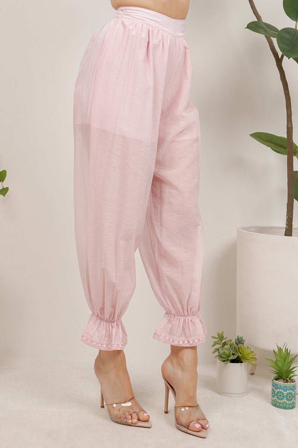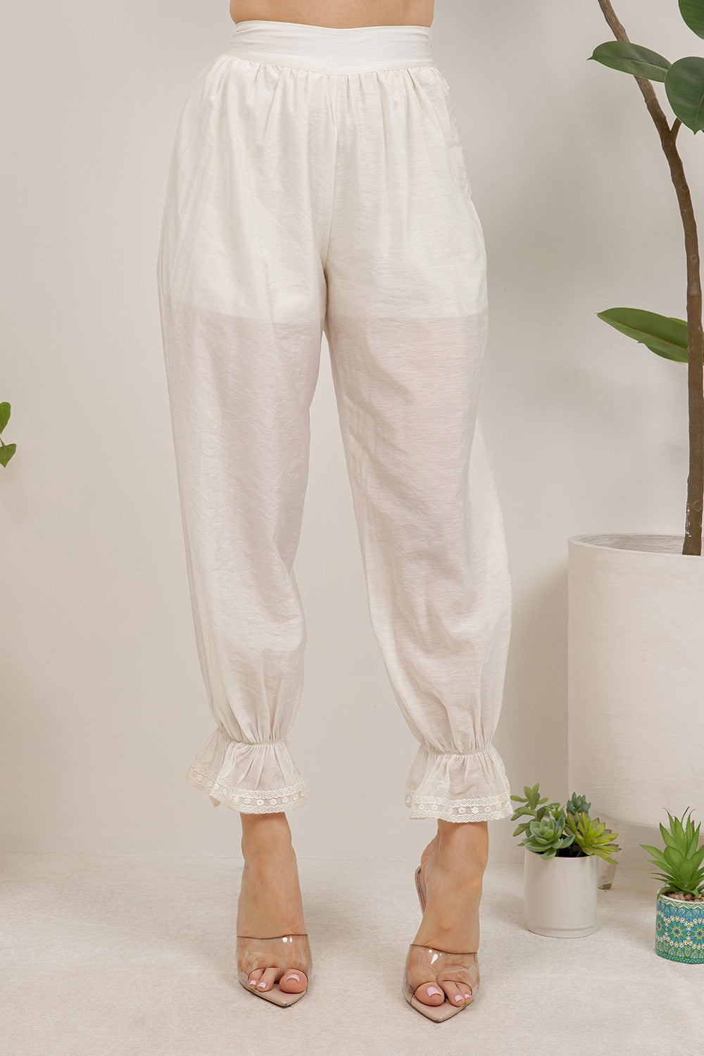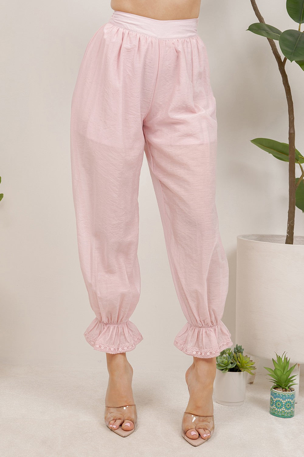 Stylish gathered elastic ankle cuffs